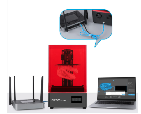 — принтер Elegoo Saturn Mono 4K имеет возможность подключение к сети интернет. Это можно сделать как с помощью кабеля, так и без него.