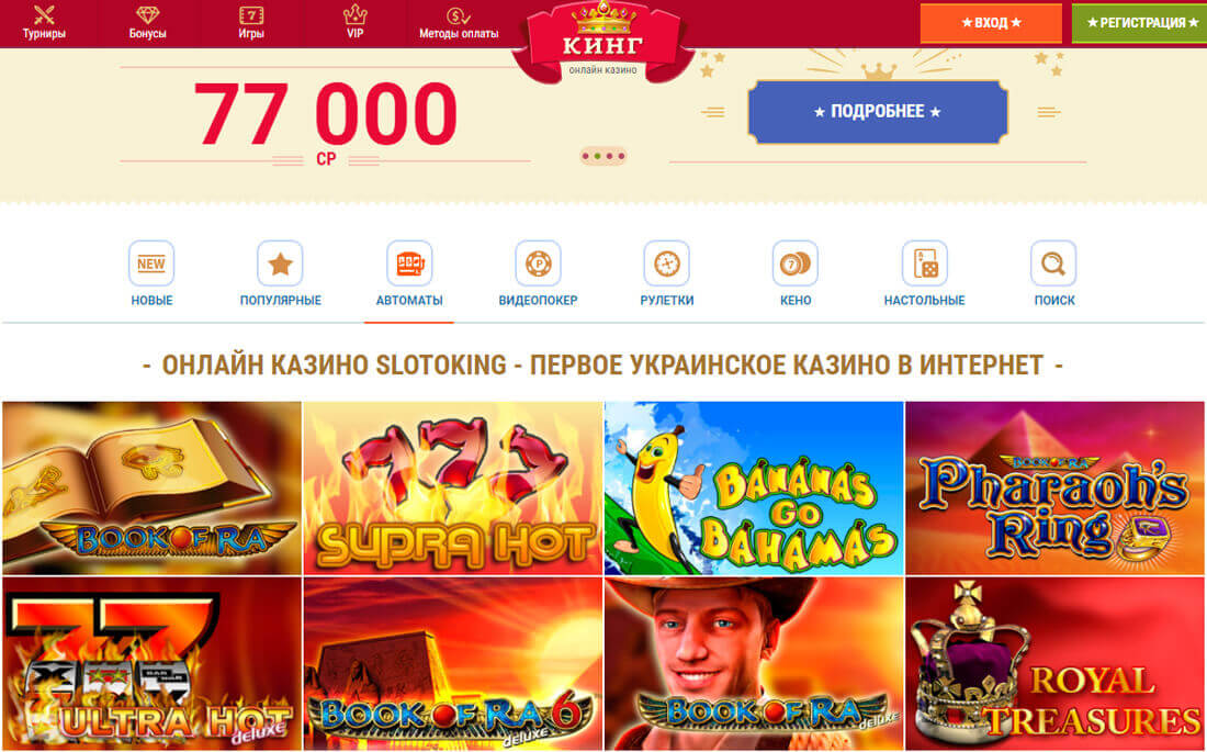 На сайте зеркале казино Слотокинг доступна игра, как в демонстрационном, так и в основном режиме. Здесь пользователи могут пройти первоначальную процедуру регистрации и получить причитающиеся бонусы.