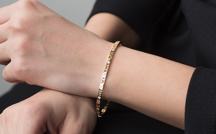 - Обруч браслета представляет собой по замкнутой кольца, как правило, больших размеров, поэтому их вы можете носить не только на запястье, а также на предплечье.