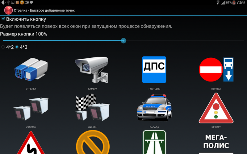 В-третьих, одно или три предупреждения по каждому из типов радаров. Данное помогает защититься от Стрелки, которая ловит нарушителей скоростного режима на большом расстоянии и делает фотографии.